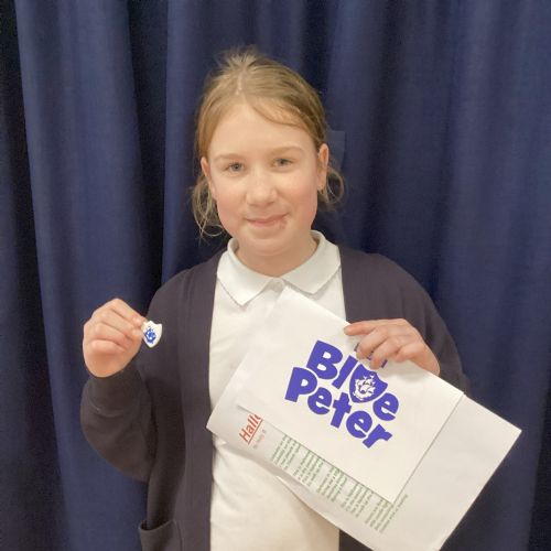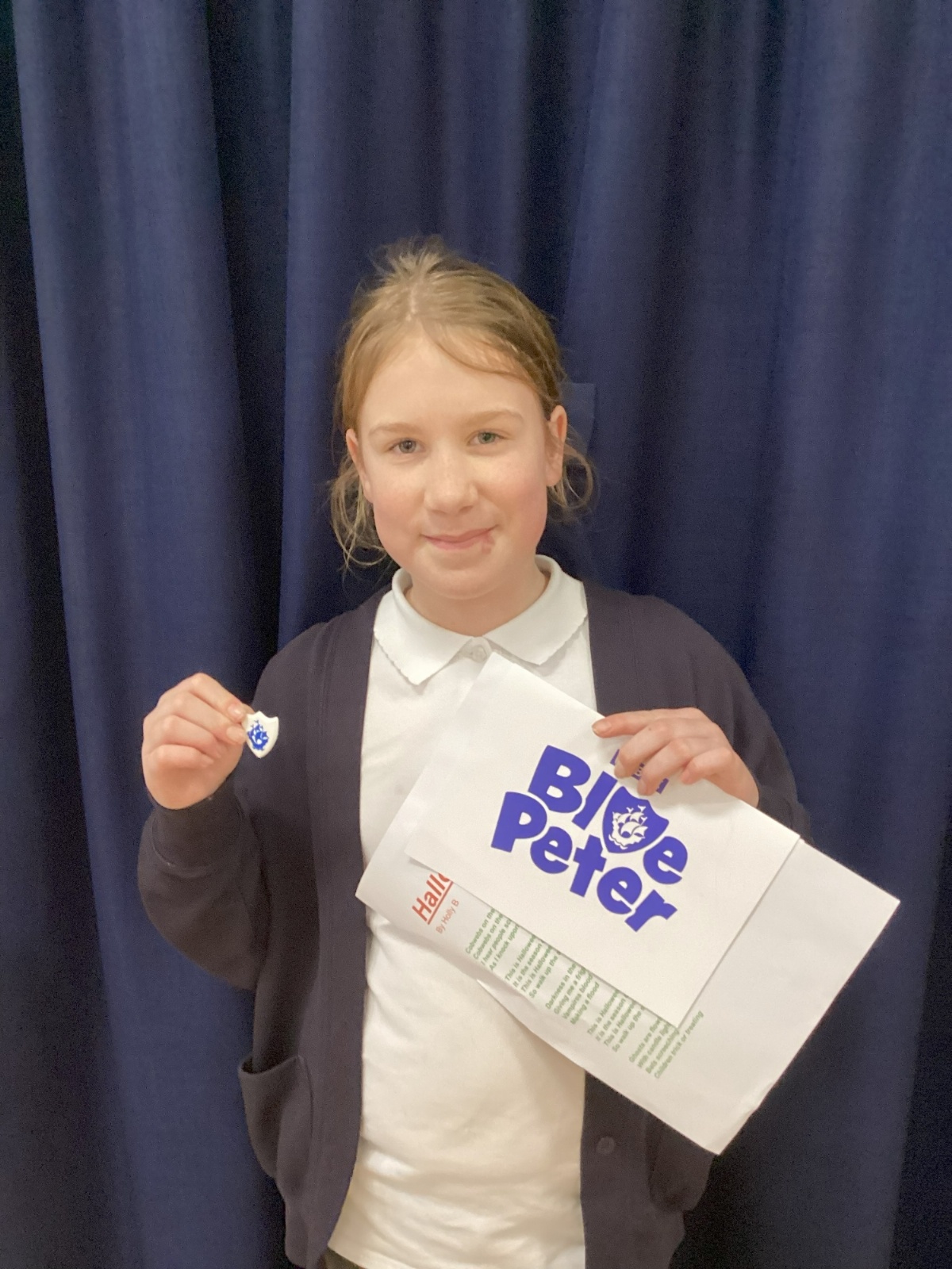 • Girl holding Blue Peter Certificate